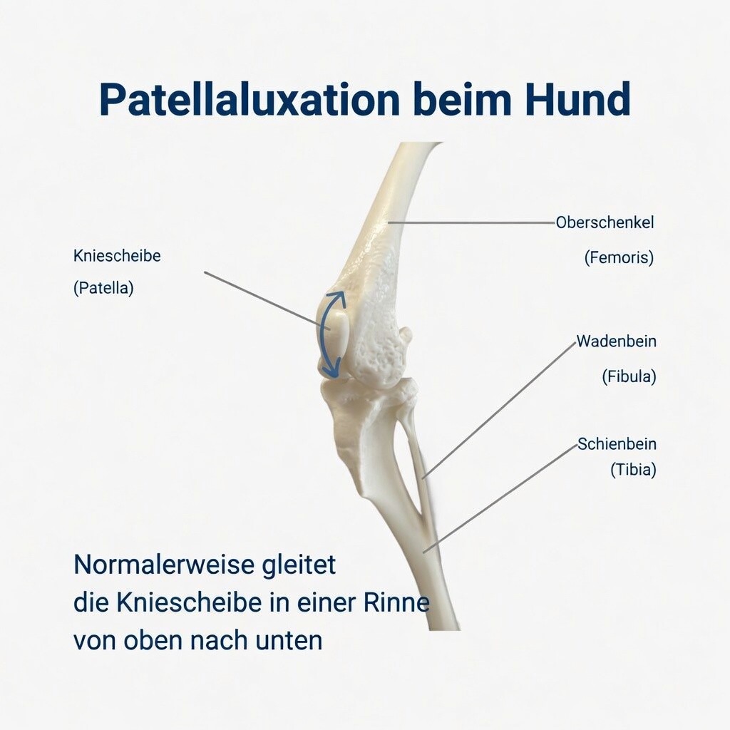 Im gesunden Zustand gleitet die Kniescheibe stabil in einer dafür vorgesehenen Führungsrinne. Bei betroffenen Hunden ist diese Struktur jedoch oft nicht optimal ausgebildet oder es fehlt an stabilisierenden Faktoren. Dadurch kann die Kniescheibe nach innen oder außen wegrutschen.